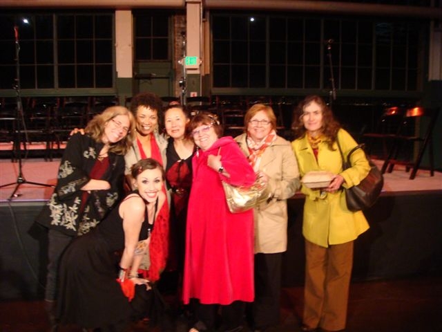 post performance--Caitlin in front & Leslie, Amira, Teresa LeYung Ryan, Lakshmi Kerner,Mary Knippel, and friend