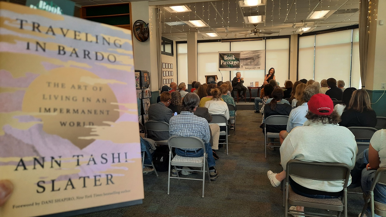 audience at Book Passage cheering for Ann Tashi Slater in conversation with Sylvia Boorstein - photo by LeYung 2025.09.27