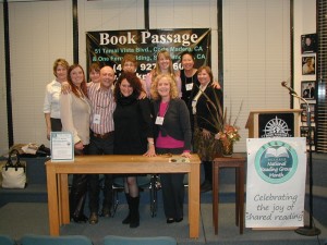 Women's National Book Association-San Francisco Chapter members-authors-presenters (back row: Margie Yee Webb, Lynn Henriksen, Tanya Egan Gibson, Verna Dreisbach; center Mary E. Knippel, Nina Amir, Apala Egan, Jane Omerod; front row: Elizabeth Pomada behind Barbara Santos, Teresa LeYung-Ryan, Linda Lee, Elisa "Sasa" Southard, Joan Gelfand) at SFWC --photo by Don Hudson who says Western Women Save the World